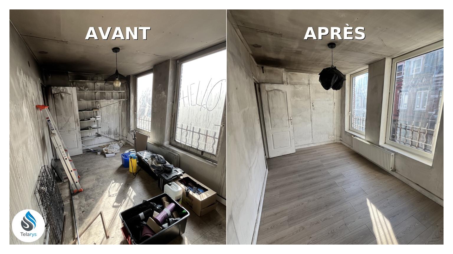 Telarys intervient après un sinistre ou une situation extrême : incendie, dégâts des eaux, syndrome de Diogène, logements insalubres, squat, vandalisme, nettoyage industriel, façades, et autres.